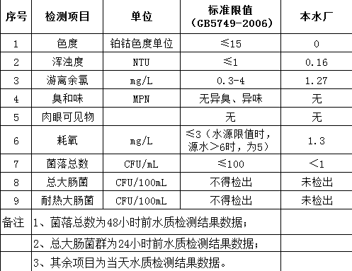先生店水廠2019年11月1日出廠水水質(zhì)公告