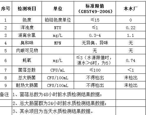 先生店水廠2019年11月5日出廠水水質(zhì)公告