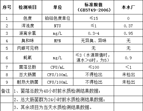 先生店水廠2019年11月7日水廠水質(zhì)公告