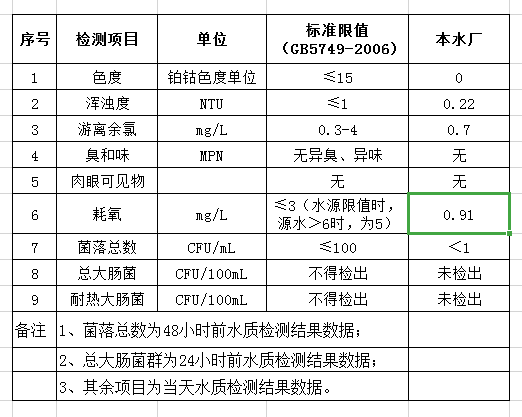 先生店水廠2019年11月23日出廠水水質(zhì)公告