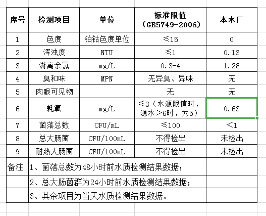 先生店水廠2019年12月10日出廠水水質(zhì)公告