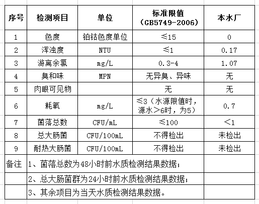 先生店水廠2020年1月14日出廠水水質(zhì)公告