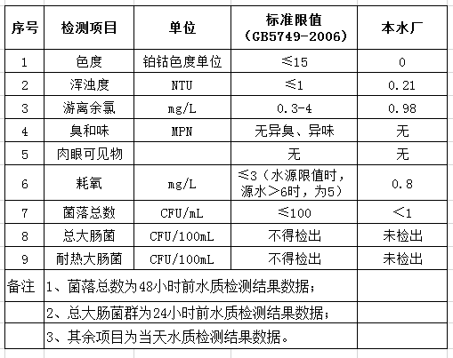 先生店水廠2020年3月25日出廠水水質(zhì)公告