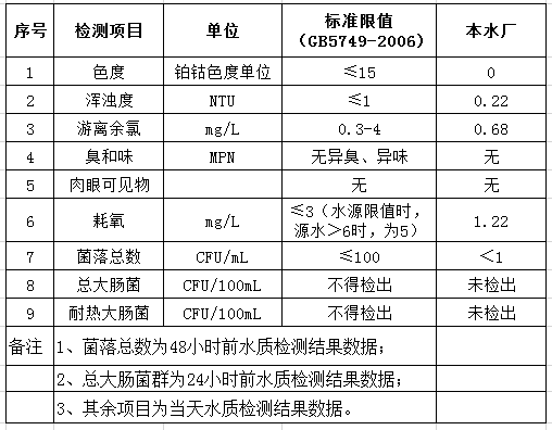 先生店水廠2020年6月28日出廠水水質(zhì)公告