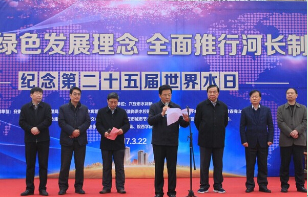 3月22日,以“落實綠色發(fā)展理念,全面推行河長制”為宣傳主題的六安市2017年世界水日宣傳活動啟動儀式在我市濱河公園舉行。市委常委、政法委書記高斌,市人大常委會副主任薛建宏、市政府副秘書長楊精明、市水利局黨組書記、局長張克定等出席啟動儀式。