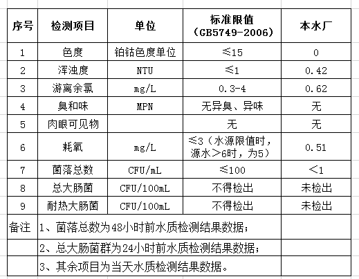 先生店水廠(chǎng)2021年1月4日出廠(chǎng)水水質(zhì)公告
