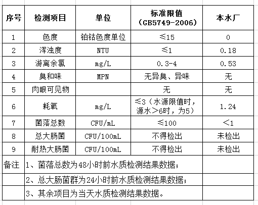 先生店水廠2021年2月20日出廠水水質(zhì)公告
