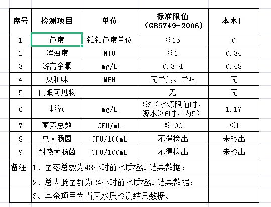 先生店水廠2021年3月25日出廠水水質(zhì)公告