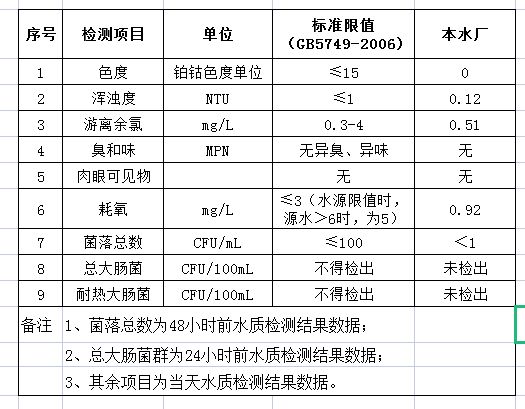先生店水廠(chǎng)2021年6月10日出廠(chǎng)水水質(zhì)公告