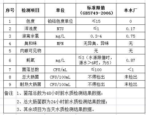 先生店水廠2021年6月15日出廠水水質(zhì)公告