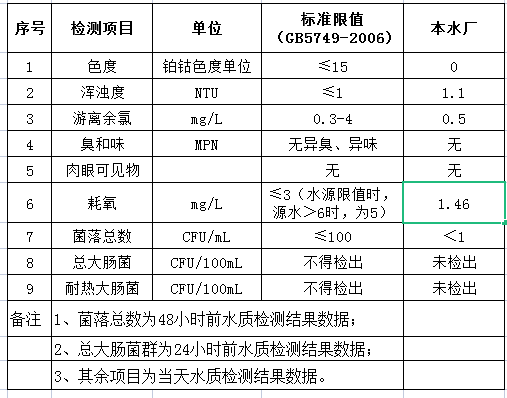 先生店水廠2021年7月1日出廠水水質(zhì)公告