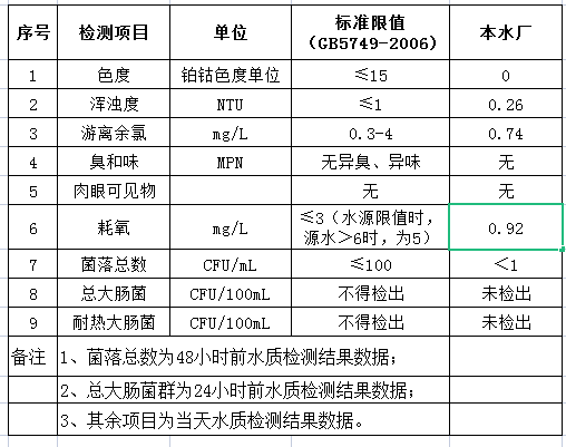 先生店水廠2021年8月9日出廠水水質(zhì)公告